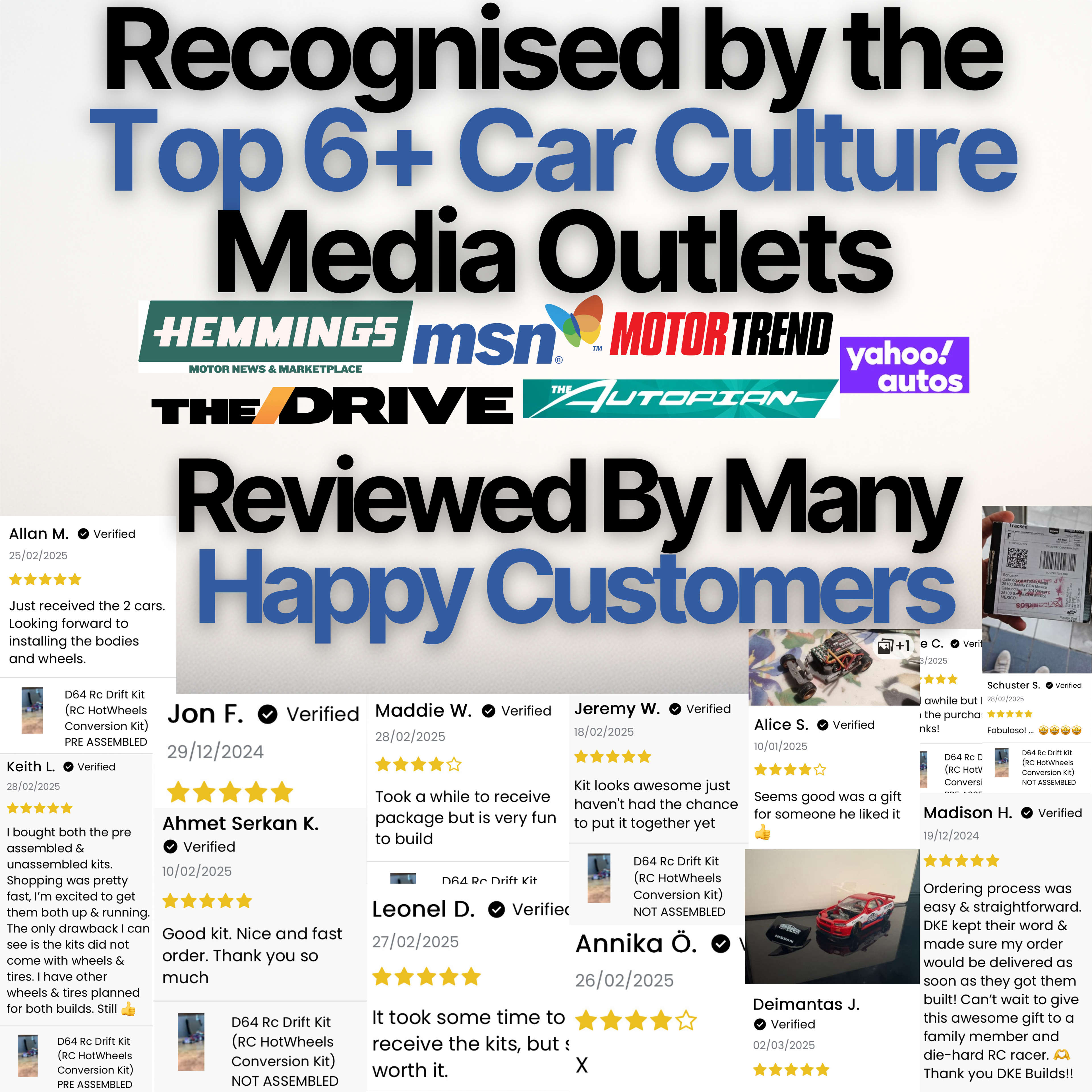 WHY DKEBUILDS? ✅ Beginner-friendly, assemble in under 1 hour.⚡ Track-ready performance, built-in drift gyro & ESC.🔩 Fits most Hot Wheels & Matchbox cars.🎁 Perfect for gifts & collectors.